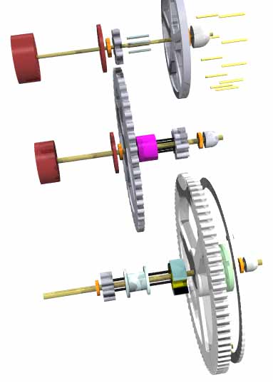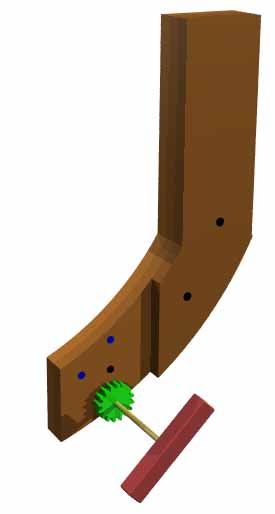 I'll have a removable key, which can be placed in one of 3 (blue) holes to wind up the clock. I'm not sure how easy it is to wind up 3 lbs, but hopefully a 16:8 set of gears will manage it.