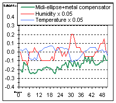 However this idea seems to help, as I had to reduce the percentage of the humidity from 5% to 3% to get the two plots to align. The weather was not so variable and thus not so convincing, but I believe this is correct. I really need more variable weather to confirm this.