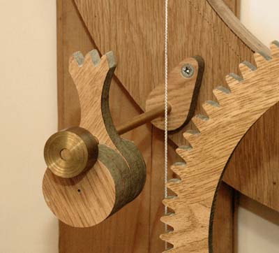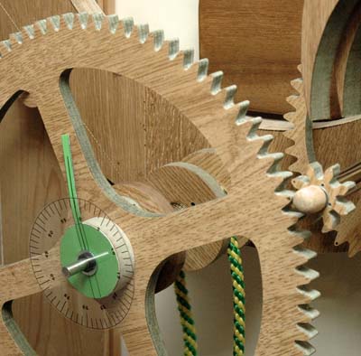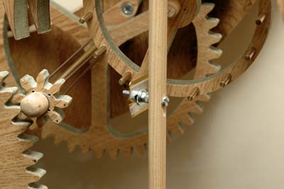 So what I have wound up with is a wooden clock that is 10 times more accurate than the original metal ones and also the one Clayton designed. Although the clock is not as attractive as Clayton's, with the exception of the arbors, fishing line and lead shot, it is made from bits and pieces lying around the garage - so it is a green recycled clock!