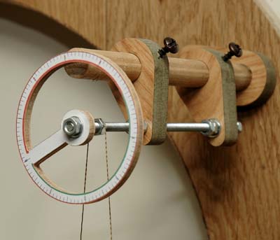 - The winding drum, which is a polished curtain rod to allow the winding rope to stay in position (while the clock is running) without adding friction to the system.
