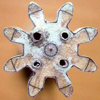 The blue bright edges to the teeth is the difference, and as you can see there is a big difference at the bottom of the two teeth at 9 o'clock. You see 8 connection holes because I have revolved one of the photos by 45 degrees (one tooths worth). Considering this is almost 4 times life size, it is not too bad. On my computer screen I can look at x20 magnification with no problem.