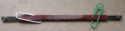 The Scroll Saw Sanding strips I brought are hopeless - wearing out very quickly and a couple of them broke. So I made my own, bending the sand paper around an old blade and they seem to work quite well, even just being held with paper clips!