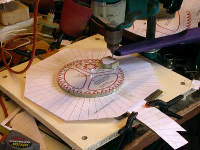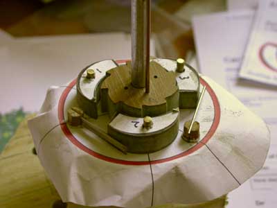 I used the large paper template to accurately give the correct angles for the gaps. The arbor hole was packed with paper to minimise the play in it.