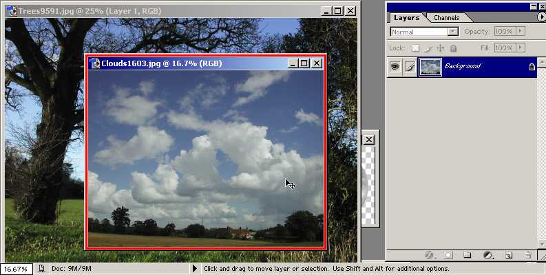 - I'll just drag it into the other image and...