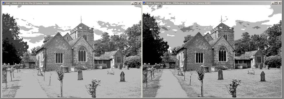 I have chosen to de-saturate the "5 Stop Tones" action (into grey bands,