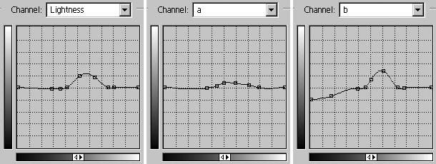 The really nice feature of this correction is that, unlike any other colour space curving, a single point on the image maps down to the same position, along the line, for all the channels. You simply move the points up or down to either lighten or darken the image, or to add or subtract colour.