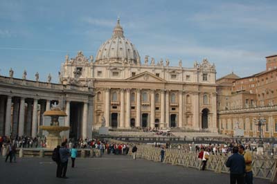 St Peter's is lighter (bump in the Lightness channel), has a touch of