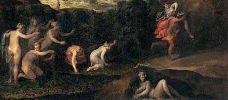 Proserpine was in Sicily, at the Pergusa Lake near Enna, where she was playing with some nymphs and collecting flowers, when Pluto came out from the volcano Etna with four black horses named Orphnaeus, Aethon, Nycteus and