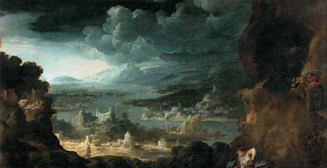 This is a completely romantic painting merging imaginary medieval landscape with