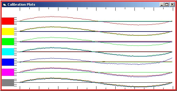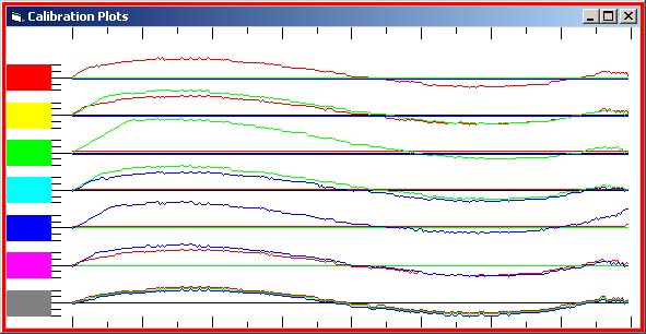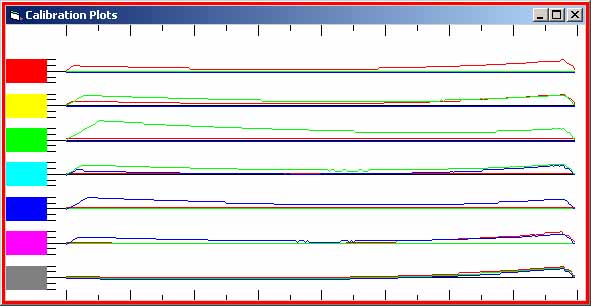Quite a difference in the Green and Blue values - but I smelt a rat - the top plot just did not seem right for neutrals. I thought it might be some scale mis-match with pixels and twips. Maybe it is my (Huey calibrated) old CRT monitor playing up - but I got similar results on a laptop LCD screen. I had constructed the gradient 6 pixels deep (no idea why!), so I tried reading 3 lines from each strip and 9 times out of 10, the values were different (just by a value or two). I double checked using the Photoshop Info readout for RGB and watching the xy position in pixels and they were always the same. So what was happening between the file's values and the screens ones - and why the variation? I now know what the problem is - Photoshop! It can not create a gradient properly - in fact PS gives different (Info palette) values along the gradients depending on the zoom factor of the image window and the physical position of the gradient on the screen (I had not thought about moving the image to see if I would get different reading!!). It only took me 2 weeks to find this out - makes one love software features/bugs. I constructed another strip, this time manually intertwining the colours or with each change separated by a black pixel.