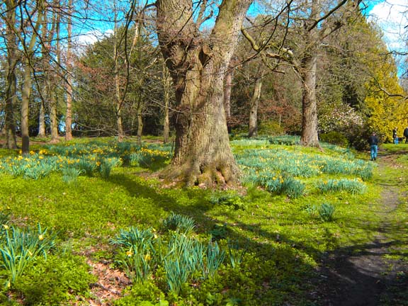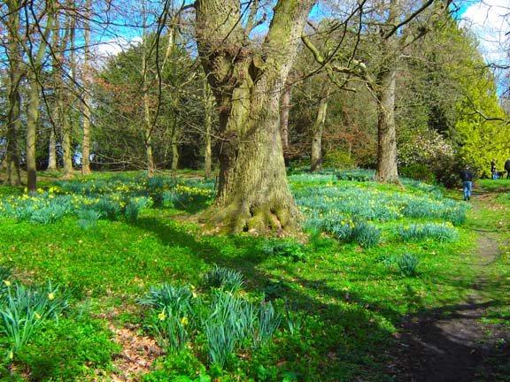 Landscapes - End of Part 1 !I had not thought, when I started this project, that I would find out so much - and only after analysing 5 paintings in any detail ! Coming from a scientific background, I had thought that one could reply on measurements to be able to analyse these master pieces. Perhaps I was too naive, or perhaps because I had not studied Art before, I had not appreciated that they had built on a wealth of observational experience that can not be easily measured and defined. There is a big gulf between science and art ! Before I draw any conclusion, especially from the last few diversions, there are a couple of images I played with which seem to capture the essence of what I have found. Firstly the Green hue 'problem'. It bugged me that the paintings did not have green leaves on their trees (and many of the other hues were 'wrong'), and I liked the confirmation from the Munsell Colour model, that we find green hues difficult to differentiate. I should have involved my father more, but alas he is not on the web - the chance remark that painters found green difficult to portray, confirms this Green problem. We have seen from the Angle plot of Munsell against the Hue of the HSB colour space, that perception of hue changes varies across the spectrum. What would happen if we tried to change the hue range of an image to imitate the Munsell spacings? Actually I can not find an easy way to do this in Photoshop, but by playing with the Hue/Saturation controls I could move the hues a little, but not enough to properly align with Munsell.