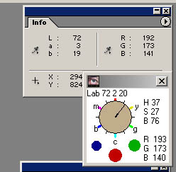 it is better to use a Screen Hue Clock, rather than the Photoshop Info palette - but better still to